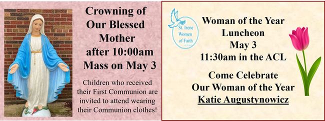 Do you have a birthday or anniversary in May? Come to any of our weekend Masses on May 16-17, to receive a blessing. Then join us for hospitality after Mass!